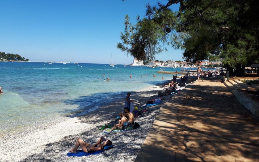 In het centrum van Porec is er een groot strand volledig ingericht om te zwemmen en te genieten van de kust. Dit is de belangrijkste openbare strand, en gezien het feit dat de Porec is een van de meest bekende toeristische steden, verbaast ons niet rijk aanbod voor toeristen. Het strand is maximaal gecorrigeerd voor alle leeftijdsgroepen. De verharde plateaus bedekt met stenen. Het strand heeft een mild toegang tot water, en is zeer goed uitgerust. In het water kenmerk zones zwemmers. Er is ook een waterpark voor de jongste, en uit het water heeft vele faciliteiten voor alle gasten. De promenade die het strand volgt is een geweldige plek voor een praatje en uitzicht op de zee. Promenade loopt een kleine toeristische trein, die zo nu en uw gasten transit langs de kust naar het uitzicht te genieten. De attractie is de oude en de jonge. Kust langs het strand zijn er vele restaurants en bars. De selectie van eten en drinken was uitstekend en iedereen zal iets voor zichzelf te vinden. Het grootste deel van het strand is er geen natuurlijke schaduw, maar de omringende bomen, een ideale plek voor onderdak. Het is zeer dicht, en vrij ruim. Iedereen kan zijn ideale speeltuin te vinden, wanneer de zon te sterk wordt.